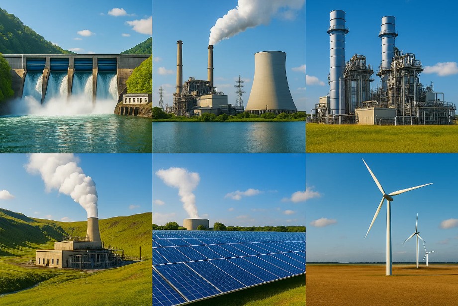 Jenis pembangkit listrik yang digunakan bergantung pada sumber energi lokal, kebutuhan daya, dan faktor ekonomi serta lingkungan.